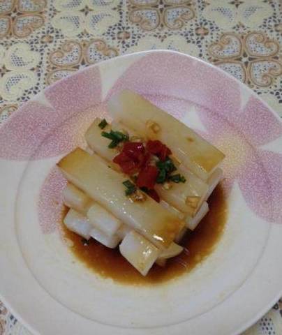 1,淀粉与水的比例根据个人口味,我喜欢吃结实一点的,所以是这个比例,淀粉与水是1比5。如果你喜欢嫩一点的,可以按1比6的比例去做。