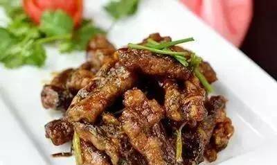 3、锅烧热后,加入油。油热后,将腌制好的肉片放入锅中炸至油香七熟;4.锅里放底油,把剩下的姜丝、红椒丝、葱丝加入锅里,中小火翻炒。烧焦时加入适量精盐炒匀;