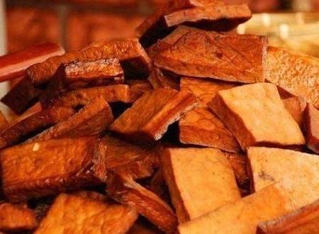 宁陕豆腐干起源于清朝道光年间,距今150多年历史。当地人用清泉水做好豆腐后切成1.5厘米的小方块,加入多种香料后制成,是当地祖传手艺。