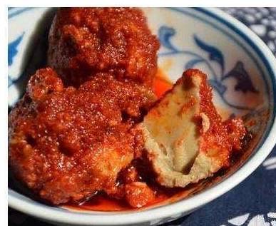 城固另外一个有名的菜名叫上元观红豆腐。上元观红豆腐外观呈枣红色,具有松软、细腻、味尾醇厚、余味悠长等特点。百余年来一直保待传统制作工艺,久享声誉。