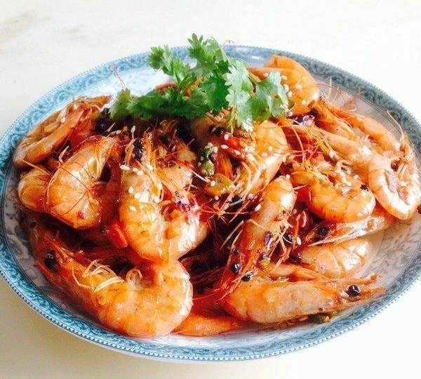 香辣虾:锅里放油,有钱的银可以用炸的方式半锅油都可以,烧热把沥干水的虾倒入锅里翻炒,直到虾壳全部通红在炒小会就可以先装起,把所以配料准备好,锅里的油底留着,把花椒放进去爆香,然后把辣椒干,红辣椒,青辣椒,葱白,姜片,薄荷倒进去炒香,倒入虾,翻炒均匀,倒入辣椒粉,同时加盐,一点儿酱油,红油,再翻炒均匀,再倒入香葱叶,炒均匀,然后撒上熟芝麻,装碟即可。