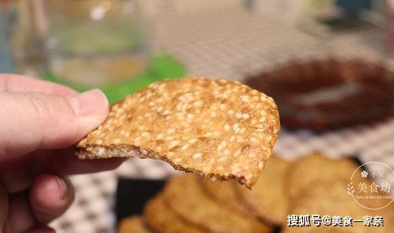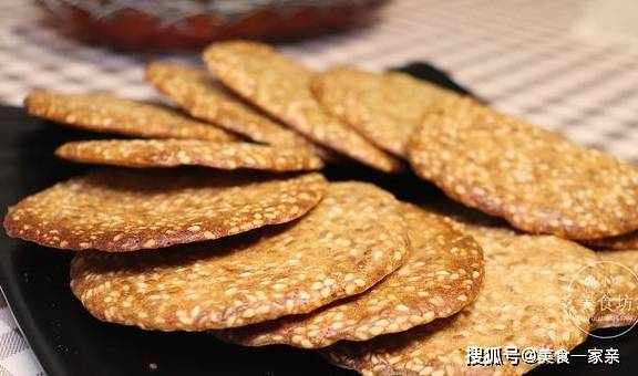 芝麻脆饼凉了会非常酥脆,一咬就碎,如果吃的时候不脆,咬的时候软说明烤的时间不够,或者面糊太稠,中间软四边已经烤干了,这个时候考虑面粉是否加多了,烤到正反面金黄就可以了。