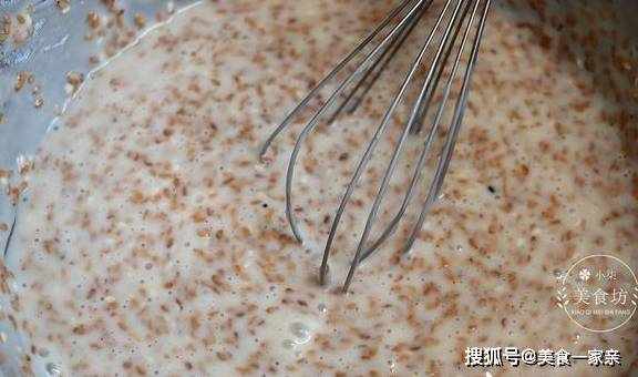 第六步:搅拌到表面没有浮油,油和食材充分的融合,用勺子舀流动性很好,像这样就可以了。
