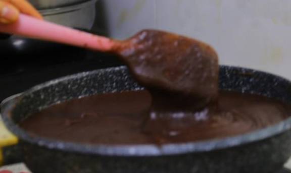 12.发现豆沙变得干了,硅胶铲划过有纹路了,没有流动性了,