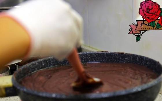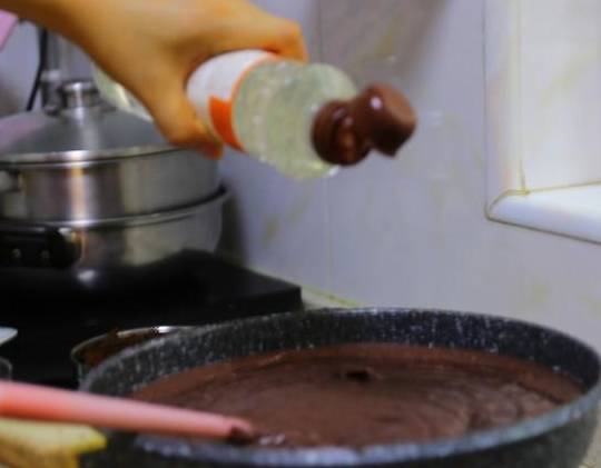7.多次少量加入玉米油,每次加进去现将火调小,用豆沙将油迅速盖起,画圈圈搅拌翻炒太热了我带了手套,还有套袖防止飞溅烫伤。