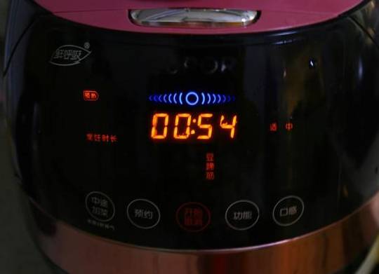 2.泡好的豆子放入电压锅中,水没过豆子1.5公分左右即可,按下豆蹄筋功能键,点击开始。