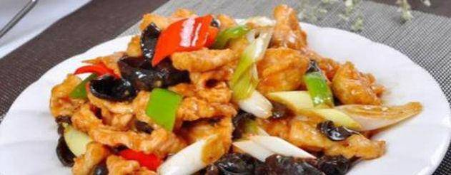 6.锅中留油10克,烧热下入葱姜蒜、洋葱、青椒、木耳、肉片煸炒拌匀。