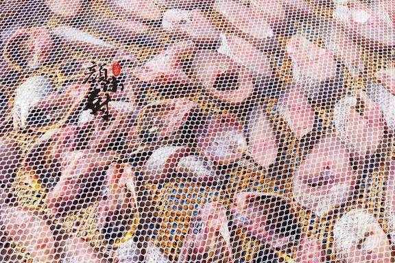 步骤六:盖上密网防止苍蝇,放在太阳底下晒上2-3天,大概6成干,这个干度是最好吃的,晒好放冰箱冷冻保存,放上一年都没问题,随吃随取。