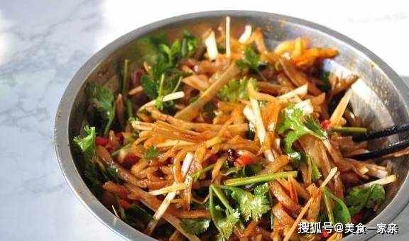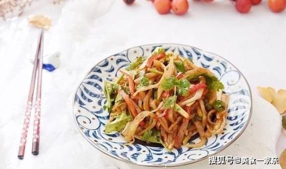 6然后加入葱丝、香菜、红椒丝、蚝油、酱油、醋、糖拌匀即可。具体的用量您可以根据的喜欢好来调整,我放了两大勺蚝油,一大勺香醋、一勺酱油,一勺糖。
