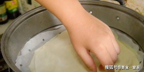 开始擀的时候,锅里多添一些清水大火烧开,等烧开之后,我们的第一张饼皮已经擀完了,这之后把饼皮放入蒸屉内,火候转成中小火,盖上盖子开始蒸。这时候我们再去擀第二张饼皮,擀好之后第一张饼皮大概已经半熟了,把刚擀好的饼皮摞在第一张饼皮上面,盖上盖子开始做蒸,以此类推,这时候去擀第三张,等到最后一张的时候,放进蒸屉里,蒸3分钟就可以出锅了。