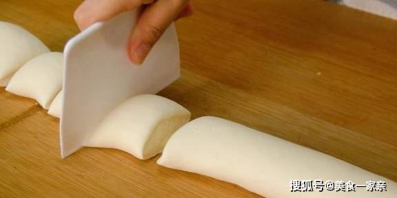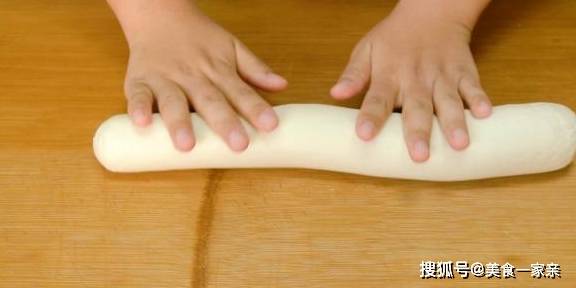 面团饧好之后我们就不要揉了,直接滚成长筒,下面剂,剂子下的小一些,饧的到位的话很小一个剂子就能擀的很大很薄。