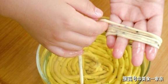 面团揉好之后,我们需要进行非常关键的一步,那就是“饧”,饧面是一个让面团松软的过程,盖上保鲜膜密封饧大概半个小时就可以了,饧完之后用手去轻轻扯一下面团,如果能扯出半截手指的长度而且不断这就代表已经饧的很好了。