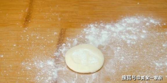 3、把剂子擀成饼皮的时候,剂子同样的不要揉,直接双手搓圆按扁开始擀就可以了;