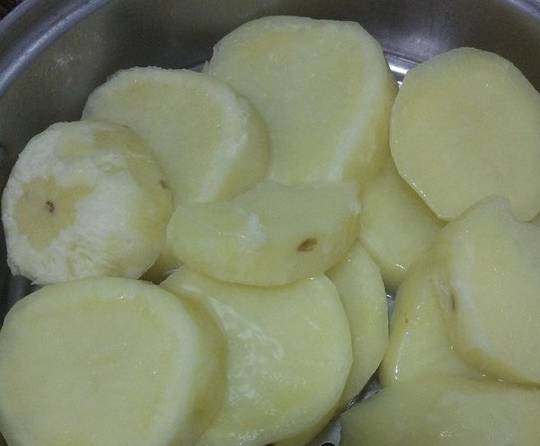1.新鲜土豆去皮洗净,切块上龙蒸锅蒸。
