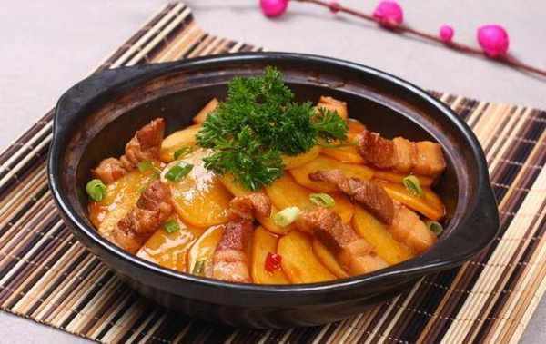 做法:把花菜洗净掰成小朵,放在淡盐水中,浸泡15分钟备用。五花肉洗净切成薄片,香葱洗净切成长段,姜切片,思安去皮洗净切成片备用。