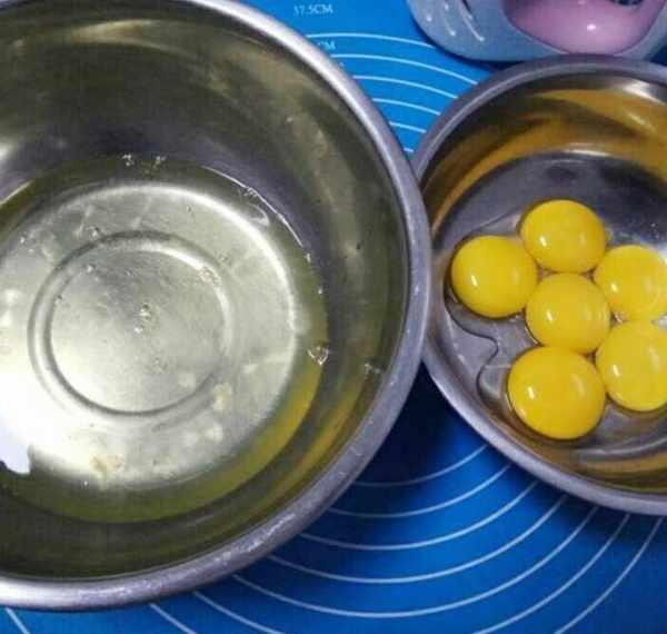 步骤一:先准备2个盆,将蛋清蛋黄分离,注意装蛋清的盆里要保证无水无油,这是重点!否则蛋清不容易打发。