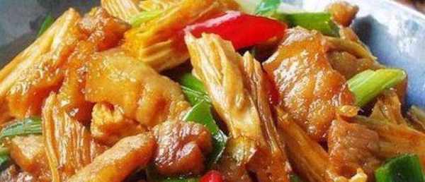 食材:五花肉、腐竹、蒜苗、酱油、盐、鸡精、蒜。