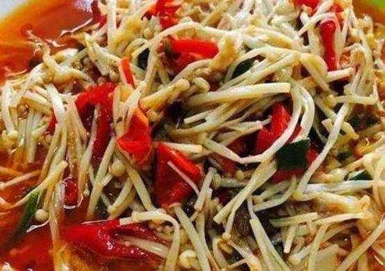 5.锅烧开后加入金针菇,没有莫过不要紧,一会儿金针菇变软会出水的;