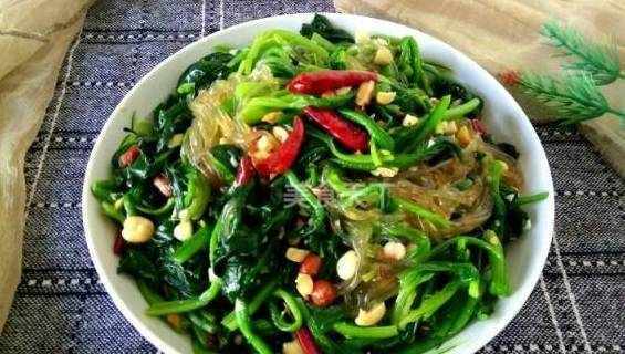 菠菜拌粉丝的做法步骤:8粉丝捞出,控净水份放入盆中,菠菜放入盆中