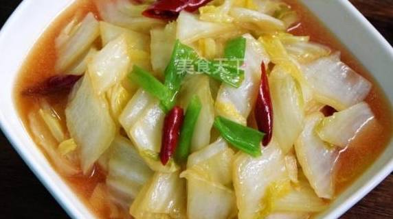 醋溜白菜的做法步骤:6倒入白菜稍炒
