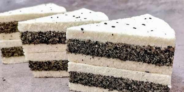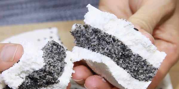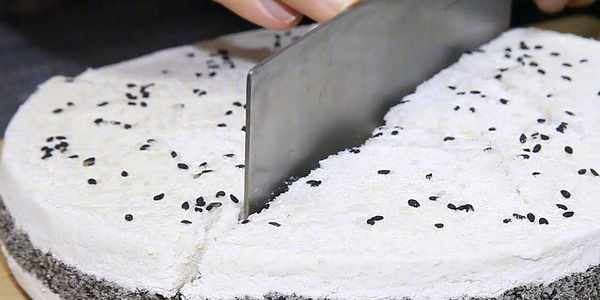 这次分享的美食叫做黑芝麻松糕,松糕大家都吃过了,用大米跟糯米粉制作做的,口感蓬松,嚼的时候有一点筋道,虽然有糯米,但是一点也不粘牙。芝麻混合大米粉做成中间的芝麻馅,口感香甜,芝麻特有的气味非常浓郁,很刺激胃口。因为是甜口的,吃的时候很开心,这就是甜食的好处,甜度适当控制,这样就不容易腻。