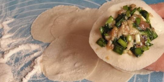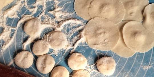 6.饧好的面做成大小适中的面剂,擀圆作饺子皮