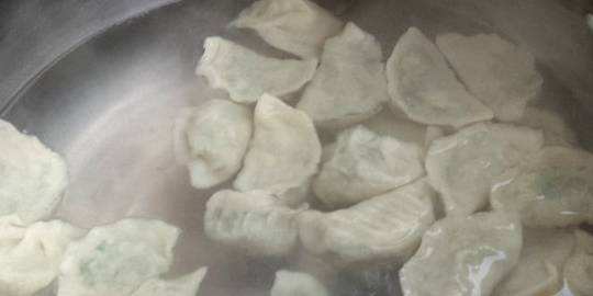 9.煮锅加水烧开,水饺入锅煮,煮熟即可捞出享用