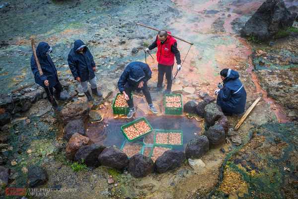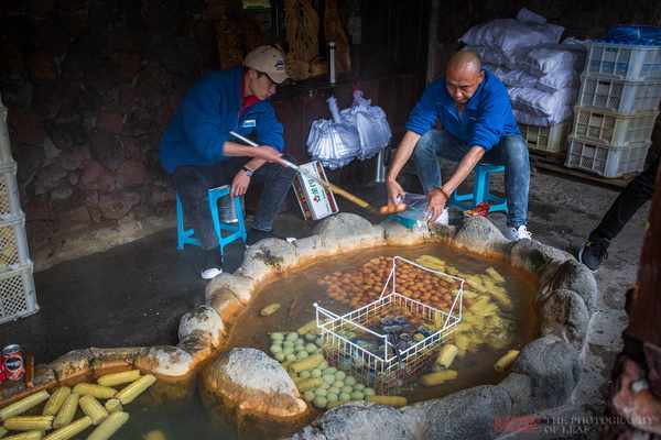 原来每天工作人员都会把鸡蛋拿到高温池中煮上个半小时,然后再拿到木屋中来卖,木屋里的池子只是一个保温的效果。确实这样做会更合理些,不然5000个蛋电磁炉也来不及烧。