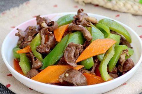 做法:锅中烧油,油热后倒入猪心翻炒片刻后。加入料酒炒至变色,盛出备用。锅中留油,下入青椒片,胡萝卜片翻炒片刻后。