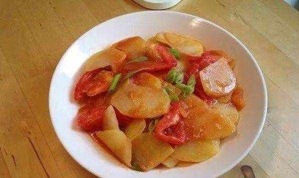 1、土豆洗净去皮切片,西红柿洗净去皮切小块。