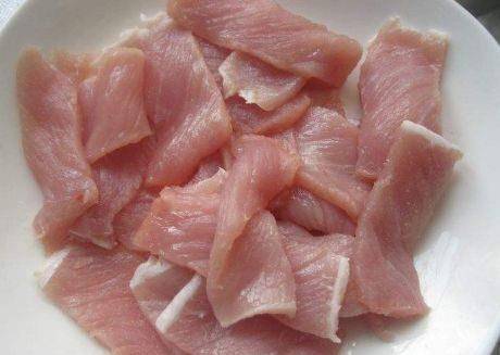 第六步,里脊肉清洗干净后,切成薄薄的片,加上料酒和奥尔良烤肉料,搅拌均匀入味;