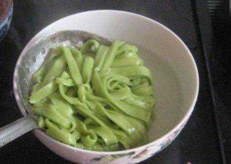 烹饪小技巧:1、打好的韭菜汁,一定是要过滤干净,过滤好的韭菜汁,再去和面,做好的面条,去煮制的时候,在开水锅中,加上点植物油和食盐,可以很好的保证煮出来的面条不会粘在一起,面条煮好后,过一遍凉开水,便可以直接码上自己喜欢的菜,搅拌均匀即可开吃。