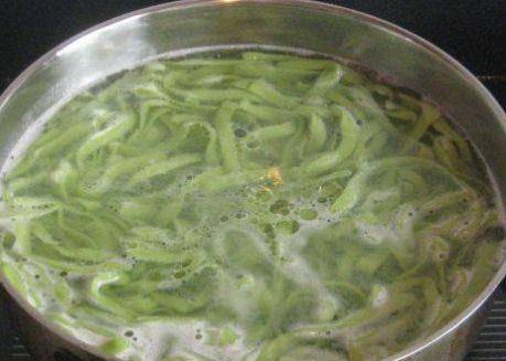 第七步,锅中添上水,待水煮开后,加上些许的盐和植物油,下入面条,开始煮;