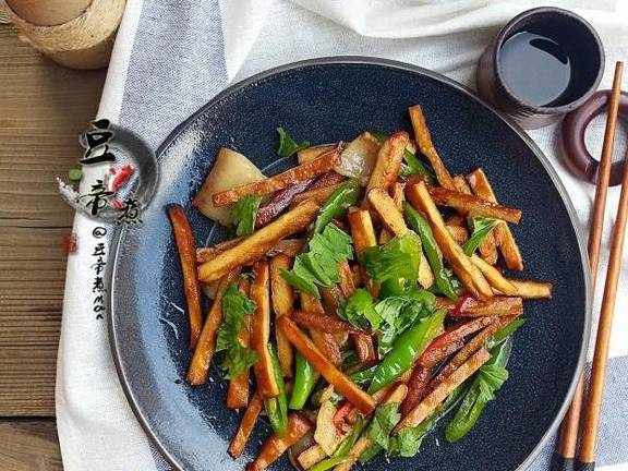 食材要有多方面的尝试和食用才能摄取比较均衡的营养,像现在要推荐的这个菜。看似非常的普通但是其营养价值其实非常的高,其主料的“香干”是一种豆腐再制品。口感韧香非常有味,香干含有丰富的蛋白质及多种人体所需的氨基酸经常食用可补充必要的营养物质还能防止骨质疏松强健骨骼。香干所含的大豆卵磷脂还可以防治血管硬化和胆固醇,所以偶尔食用点很不错。