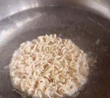 4、另起一锅,放入荞麦面饼,煮熟。