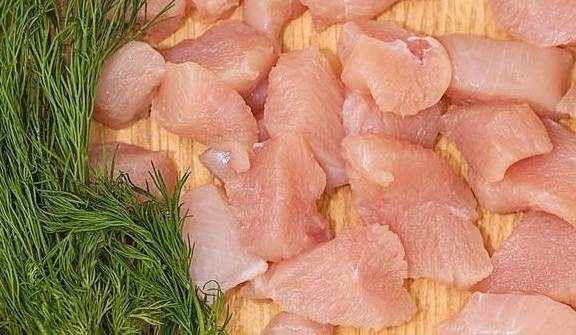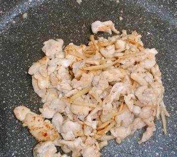 1、鸡胸切成小块,放入锅中煎熟取出。