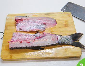 4 切下鱼腩(肚)。