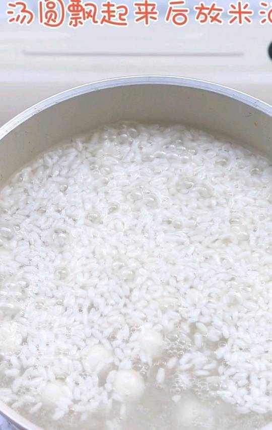 6.汤圆飘起来差不多快煮熟了,就可以放入米酒