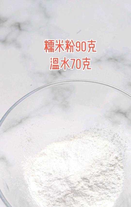 2.糯米粉加温水,揉成不粘手的面团。