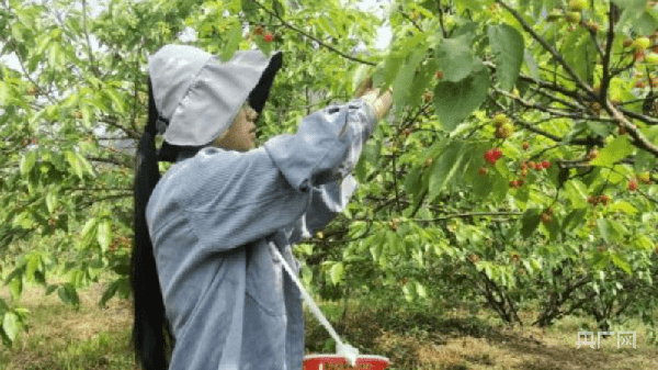 “在樱桃园里打工,既能照顾家,又能挣钱,活也挺轻松的,最好的时候一天可以收入200多块钱。”村民陈燕一边摘樱桃一边说。