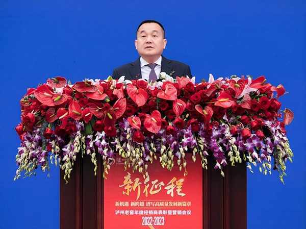 2023年3月24日,2022-2023泸州老窖年度经销商表彰暨营销会议在泸州老窖广场召开,会上,泸州老窖集团及股份公司党委书记、董事长刘淼以“五大突围”总结了泸州老窖近年来的发展成果及经验,并指出泸州老窖踏上高质量发展新征程、打赢“十四五”攻坚战,必须强化“四种精神”、坚持“五不动摇”、推进“七大行动”。