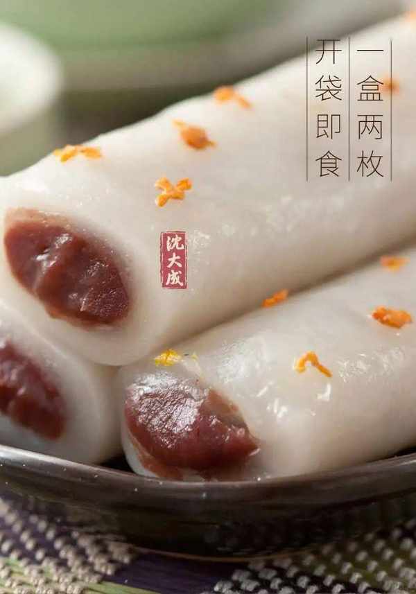 组合中还有经典的沈大成的条头糕。 糯米包裹着细豆沙芯,甜,糯,尤其可口。