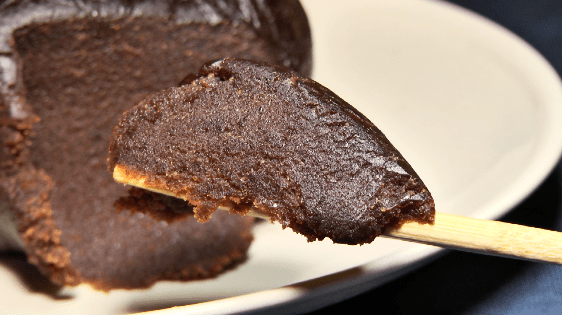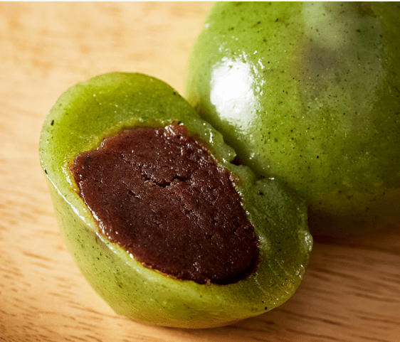 红豆沙以大红袍赤豆为原料,将其小火满熬成绵密状,之后藏进青皮之中。