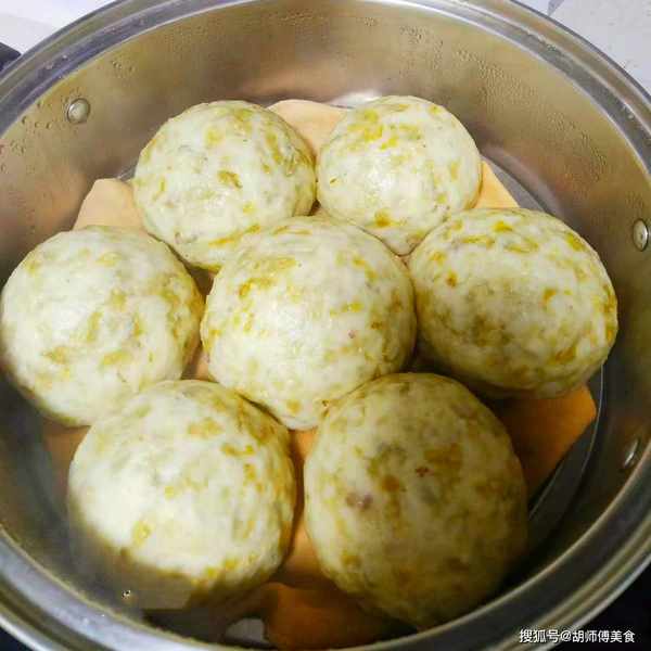 第六步:将揉好的馒头继续发酵1小时,然后把馒头放入到蒸锅中,在蒸锅中放适量的冷水,接着开大火,将馒头蒸20分钟,即可关火,将榆钱馒头焖5分钟后在揭开锅盖,可以防止馒头塌陷。