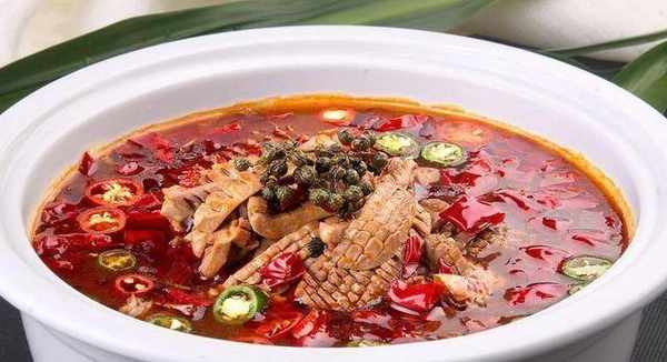 锅中烧油,油热后倒入蒜蓉和姜末,翻炒出香味,倒入花椒、辣椒粉翻炒片刻后,下入辣椒和花椒炒出香味,加入盐、胡椒粉和老抽翻炒均匀后,加入高汤。大火烧开,转中火煮20分钟。