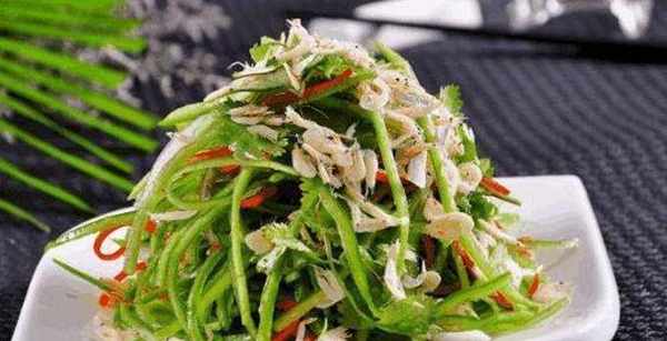 材料:尖椒2个,葱1棵,虾皮1把,香菜2棵,红椒1/2个,醋1/2勺,香油适量,酱油1勺,鸡精少许,食盐1/3勺