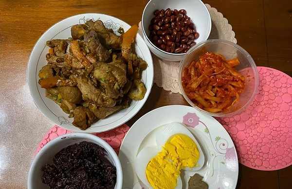 我们一起来看看这其中几天的早餐,真如网友们所说,那么寒酸吗。第一天,桌子上盘子、碗和碟子,总共放了4样,我们常见的是一个切开的煮鸡蛋,也是每天所需营养的必要摄入。还有一个小碟子里放的猪肝,补充人体所需的微量元素,能看到分量很少,可见这位母亲其实是下了功夫的。主菜是一盘炖好的排骨,颜色重了点,看起来下饭,最后就是一碗杂粮饭。