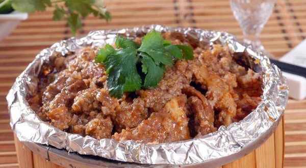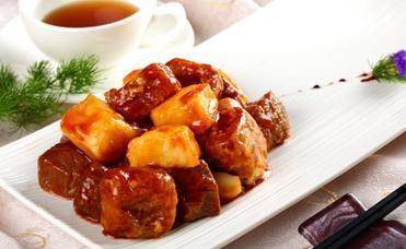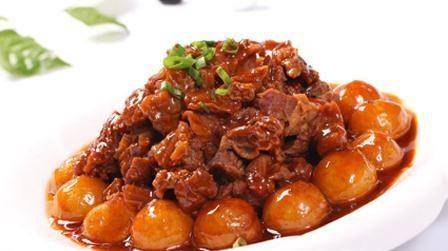 炒锅中烧油,油热后倒入牛肉、姜片、桂皮、草果和八角快速翻炒均匀。加入生抽、老抽和砂糖翻炒均匀,至变色。加入清水放入装有花椒、小茴香的调料包。加入耗油、醋和花雕酒盖上锅盖焖煮30分钟。土豆去皮洗净切成块。另一个锅中,烧油,油热后倒入土豆块炸至表面金黄捞出备用。
