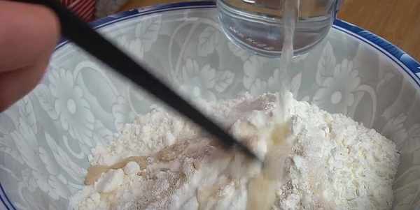 1.300克面粉放入盆中,加入3克酵母,5克白糖,用240毫升温水和面,一边倒一边搅拌。