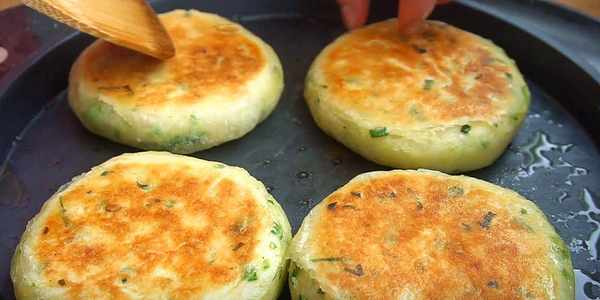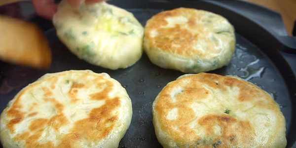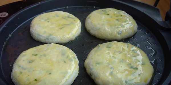 14.反复翻面多次,一直烙到两面颜色金黄,按压饼面快速回弹即可出锅。